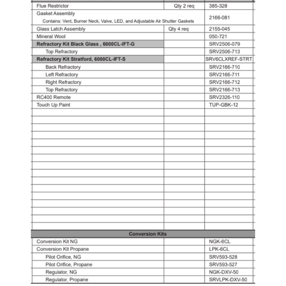 Heat & Glo 6000CL-IFT LP 36" DV Gas Fireplace Parts
